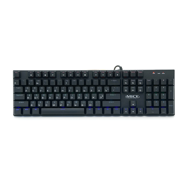 Клавиатура iMICE GK600 USB представляет собой компактное устройство в черном цвете с английской раскладкой и 104 клавишами. Ее длина кабеля составляет 100 см.