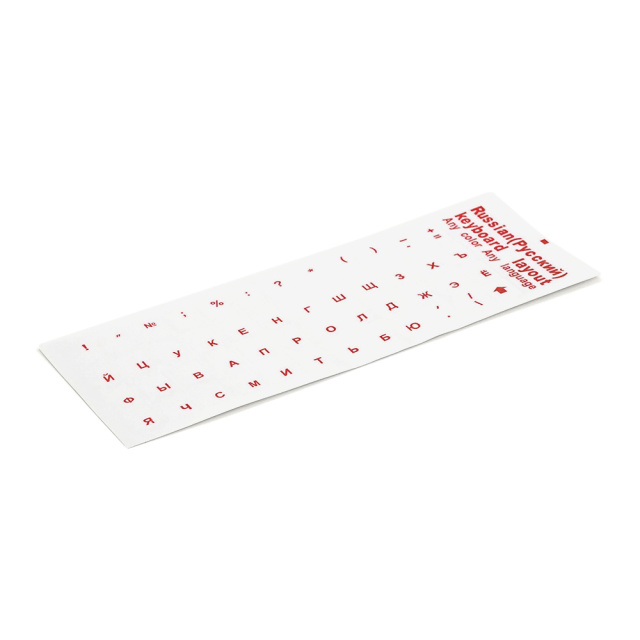 Описание: Прозрачные наклейки на клавиатуру с красными буквами Рус. для удобства набора текста на русском языке.Характеристики:1. Прозрачный...