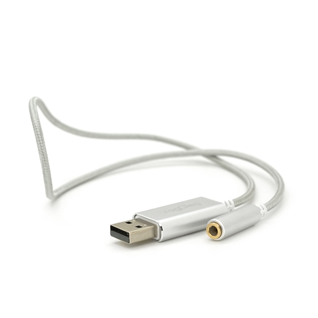 Переходник для наушников VegGieg V-K202 USB2.0(M)-Jack3.5(F), Silver, Box