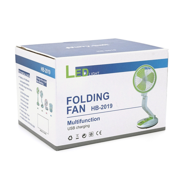 Портативный настольный вентилятор HB-2019, R*180мм, диммер, встроенный аккумулятор 4V 1600mAh, USB кабель, Box