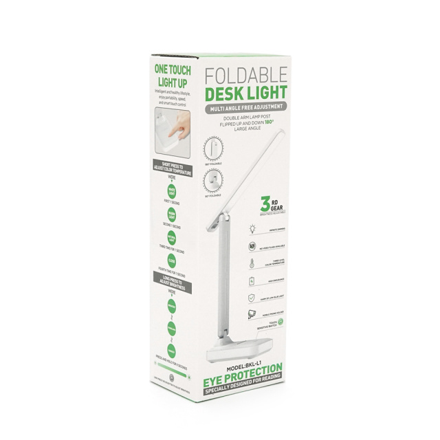 Настольная лампа BKL-L1, 3 режима (белый+теплый белый), сенсорное включение, встроенный аккум 500mAh, 3 часа работы, 20см, 227г, White, Box