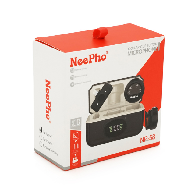 Петличный беспроводной микрофон NeePho NP-58 (2шт) в кейсе, разъем TYPE-C, встроенный аккумулятор 300 mAh, Black, Box