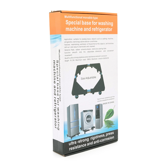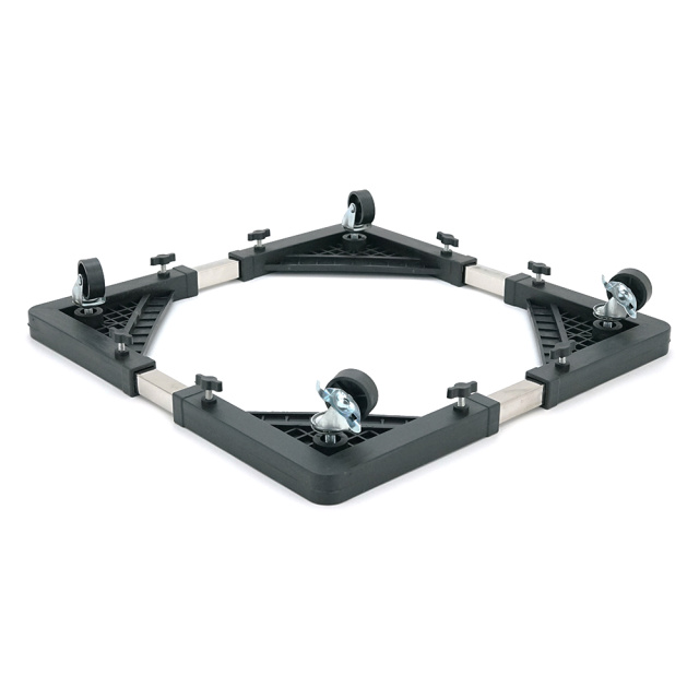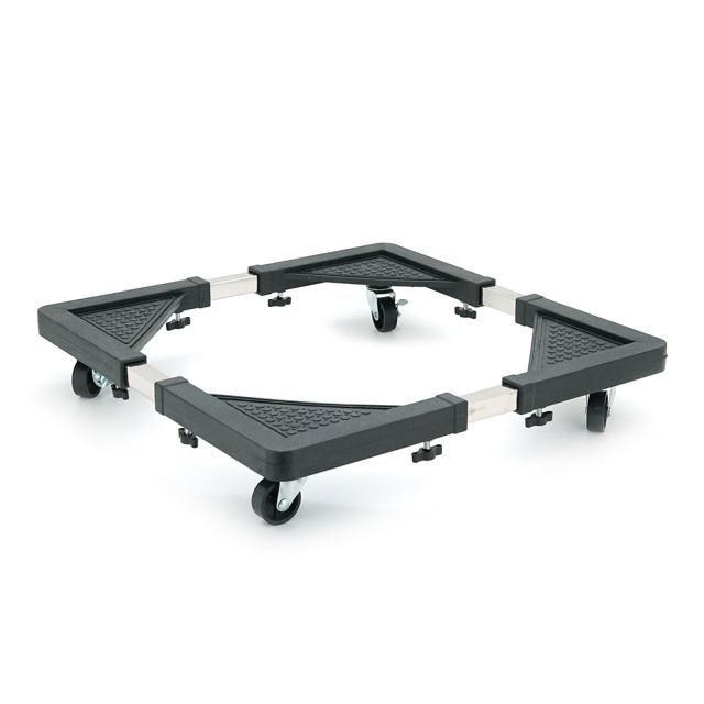 Универсальная мобильная платформа предназначена для удобного размещения и перемещения бытовой техники средних размеров. Конструкция сочетает стационарную устойчивость и мобильность благодаря комбинации колес и регулируемых ножек.
