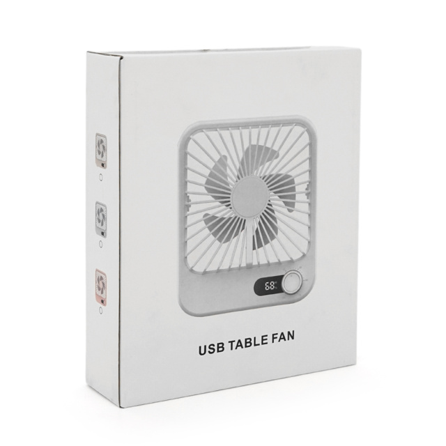 Портативный настольный вентилятор YT-1723, регулиловка мощности диммером, 185х145мм, встроенный аккум, USB кабель, Mix Color, Box