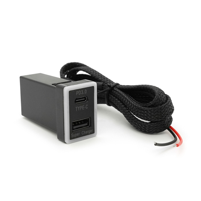 АЗУ врезное 60W-D01T03-S, PD+QC, Type-C: 30W, USB: 30W, LED подсветка, комплект проводов под пайку, 33x22х58mm, Black
