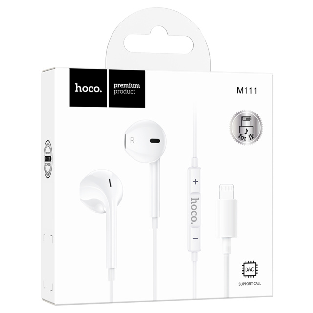 Наушники проводные HOCO M111, разъем Lighting, 1.2m, White, Box