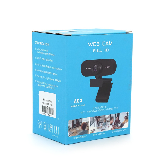Вебкамера с гарнитурой A03, 1080p, пласт. корпус, Black, Q100