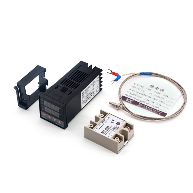 Контроллер температуры REX-C100FK07-V*AN вместе с твердотельным реле SSR-40DA и термопарой M6 составляют комплект для регулирования и контроля температуры в различных условиях.