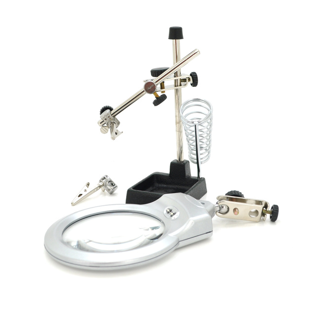 Описание: Держатель "третья рука" MG16129-А предназначен для удержания предметов при выполнении точной работы. Он обладает увеличением от 2,5Х до 10X и имеет диаметр 90 мм.