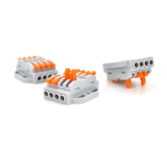 Клеммная колодка с нажимными зажимами 4-проводная WAGO K223-4P для распределительных коробок, 4-pin, серая, упаковка 5 шт,цена за упаковку