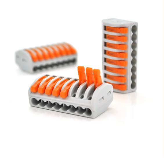 Клемма с нажимными зажимами 8-проводная WAGO K222-418 для распределительных коробок, 8-pin, серо-оранжевая,,упаковка 10 шт,цена за упаковку