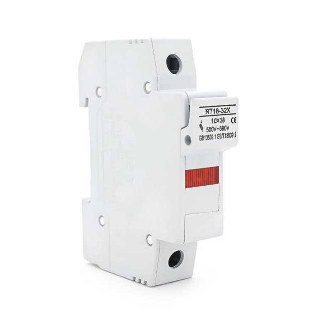 Корпус под плавкий предохранитель YRO RT18-32/1P, 32A, 500/690V, со световым индикатором, DIN, под предохранитель 10*38mm, контакты латунь.78*17.6mm