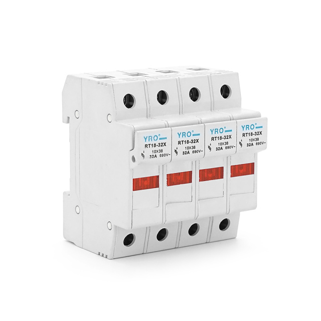 Корпус под плавкий предохранитель YRO RT18-32/4P, 32A, 500/690V, со световым индикатором, DIN, под предохранитель 10*38mm, контакты медь.78*70.4mm