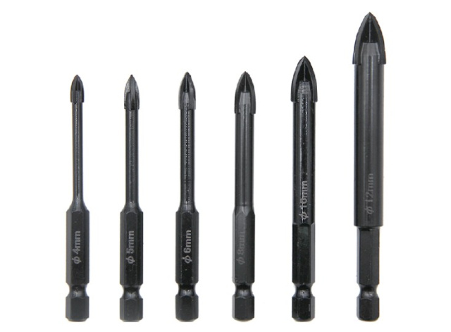 Набор из 6 сверл для сверления отверстий в различных материалах, таких как стекло, керамика, фарфор и т.д. Остроконечная конструкция сверл с прочным наконечником обеспечит точное и легкое сверление.
