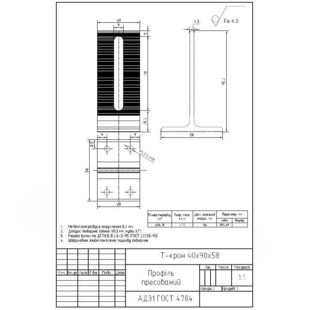 Кронштейн Т-образный алюминиевый (40*95.2*58/толщина 4.5)