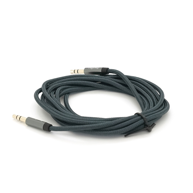 Кабель VEGGIEG V-A502 AUX Audio DC3.5 папа-папа 2.0м, GOLD Stereo Jack, оплетка, (круглый) Grey cable, Пакет