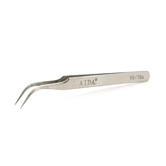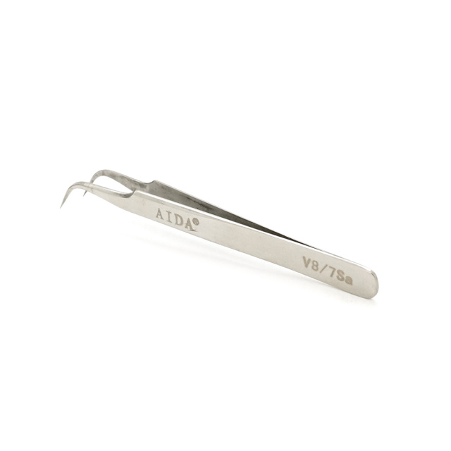 Пинцет выгнутый Aida A8 7 SA с белым антистатическим покрытием