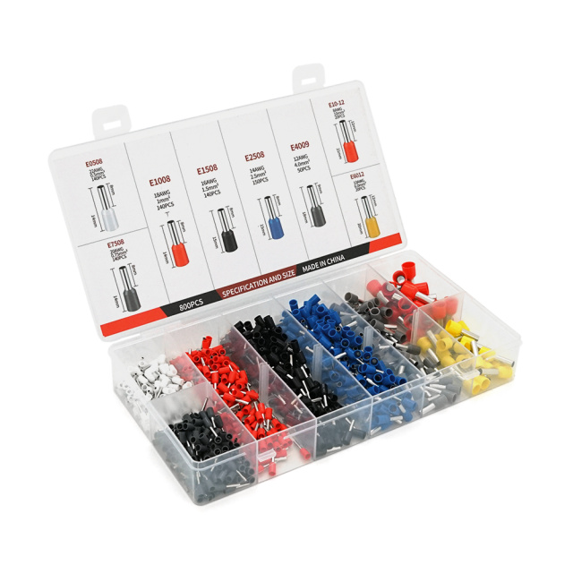 Набор клемм/наконечников 800шт(E0508w-140 E2508b-140,E1008r-140,E1508bl-140,E4009gr-50,E7508gr-140,E6012y-25,E1012r-25)в боксе