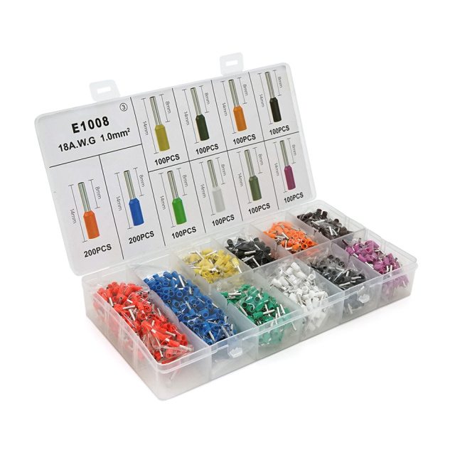 Набор клемм/наконечников 1200шт E1008 (R-200, B-200, Y-100, Bl-100, O-100, Br-100, G-100, W-100, Gr-100, V-100) в боксе