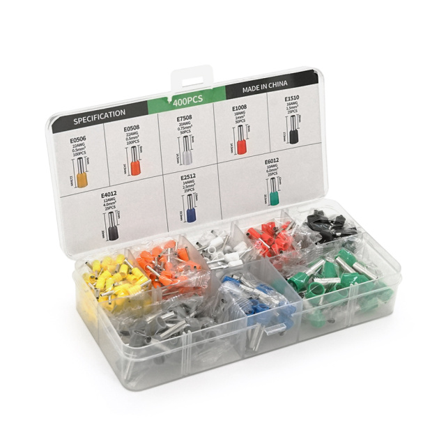Набор клемм/наконечников 400шт(E0506y-100.E0508o-100.E2512b-25,E1008r-50,E1510bl-25,E4012gr-25,E7508wr-50,E6012g-25)в боксе