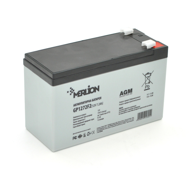 Аккумуляторная батарея MERLION AGM GP1272F2 12 V 7,2 Ah ( 150 x 65 x 95 (100) ) 2,0 кг Black/White Q10