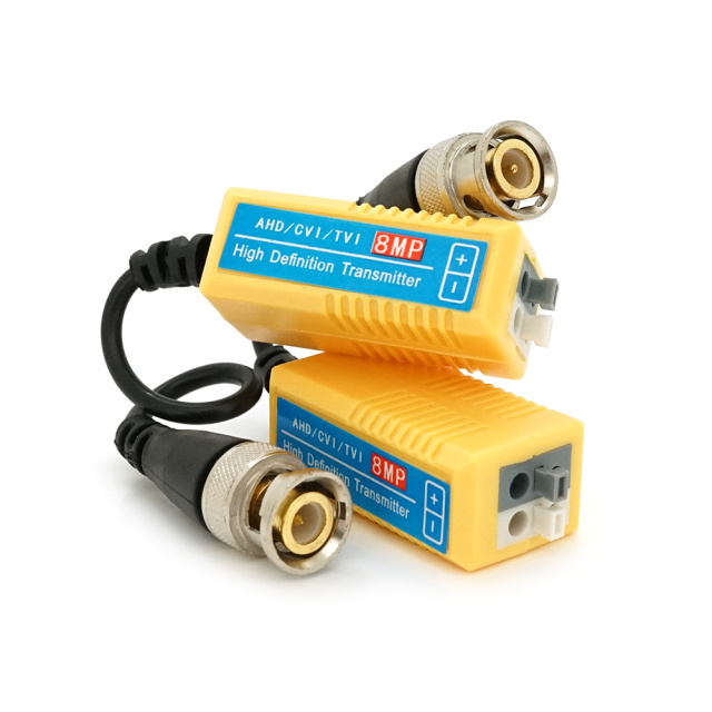 Пассивный приемопередатчик видеосигнала 8MP AHD/CVI/TV/CVBS для передачи видеосигнала на расстояние до 300/200 метров. Имеет пружинные зажимы для удобного подключения.