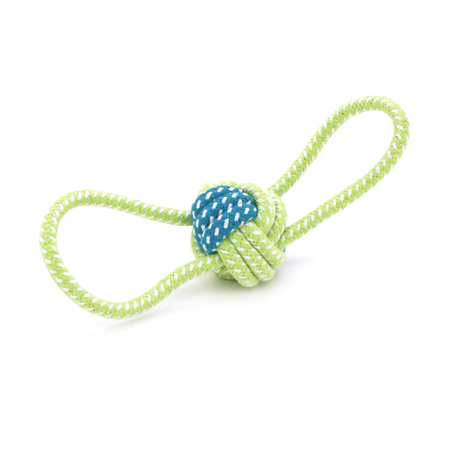 Игрушка из хлопчатобумажной веревки с узлами для собак в виде шара с двумя петлями, 6*16см, зелено-синяя