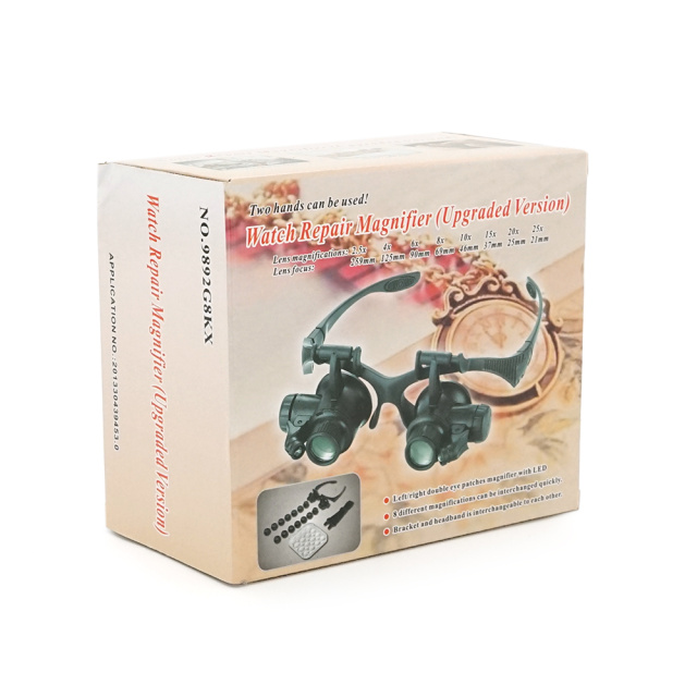 Лупа-очки бинокулярная NO.9892G8KX c Led подсветкой, 8 сменных линз, 2,5х4х6х8х10х15х20х25, Вох