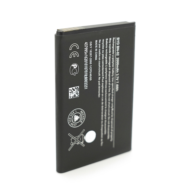 АКБ для Nokia BN-02 с ёмкостью 2000 мАч, упакованная в блистер.