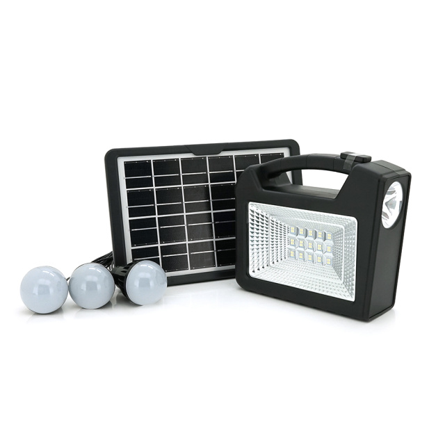 Переносной фонарь GD-103+ Solar, 1+1 режим, 1+15Led, встроенный аккум-Powerbank 10000mAh, 2USB, 3 лампочки 3W, USB выход, Black, Box